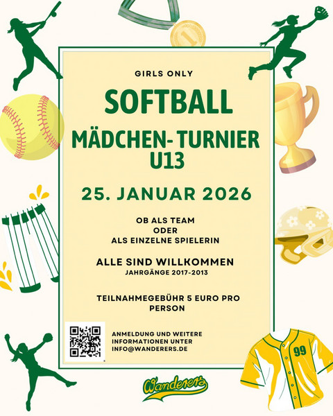 Wir freuen uns darauf, erneut viele U13-Mädchen zu unserem 2. Softball Hallenturnier im Januar begrüßen zu können. Unsere erstes Turnier vor der vergangenen Saison kam großartig an, und deshalb starten wir im Januar 2026 erneut durch.