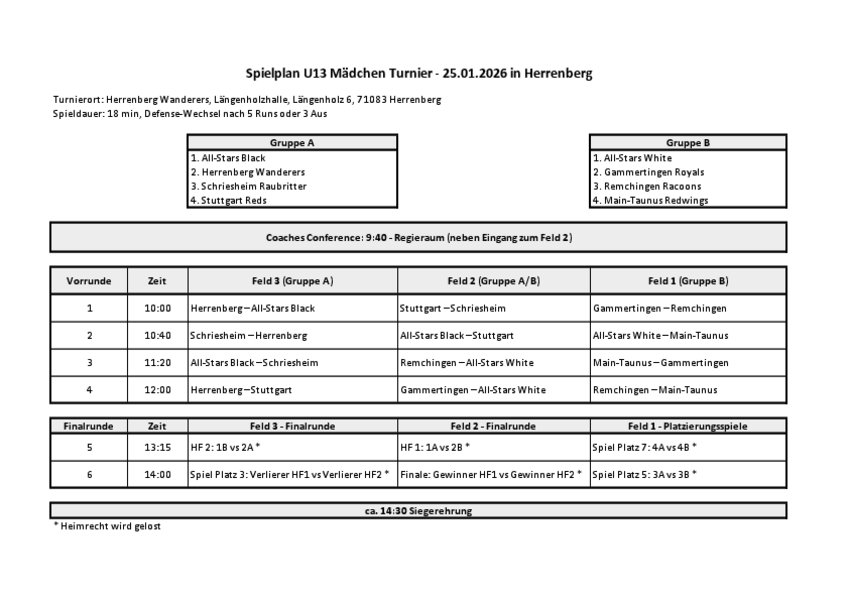 - Einzelspielerinnen bitte ein weißes & schwarzes T-Shirt mitbringen.